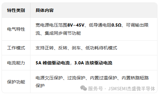 今天,杰盛微(JSMSEMI)要为大家带来一款重磅电机驱动芯片 ——JSM4950T,作为经典型号 A4950T 的无缝替代方案,它不仅继承了原型号的核心优势,更在可靠性、功耗控制上实现优化,完美适配直流有刷电机的 PWM 调速需求,为多领域应用注入 “国产芯” 动力。