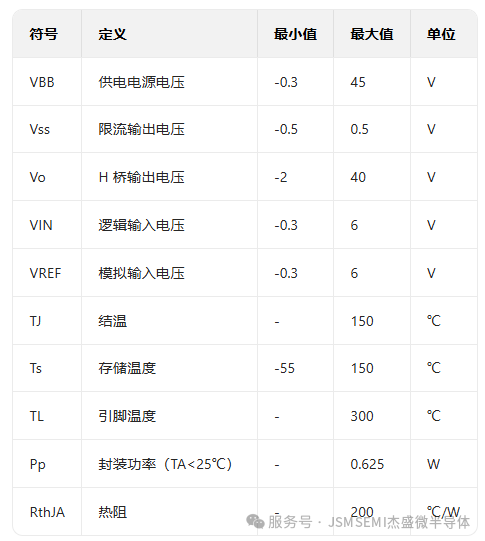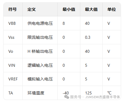 极限工作范围(TA=25℃,超过可能导致器件永久性损坏)
