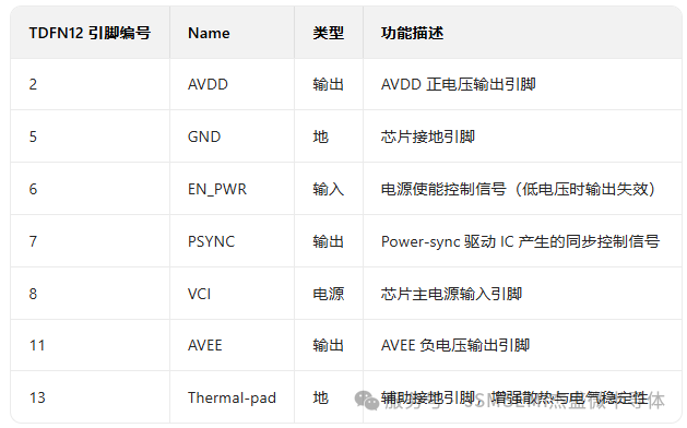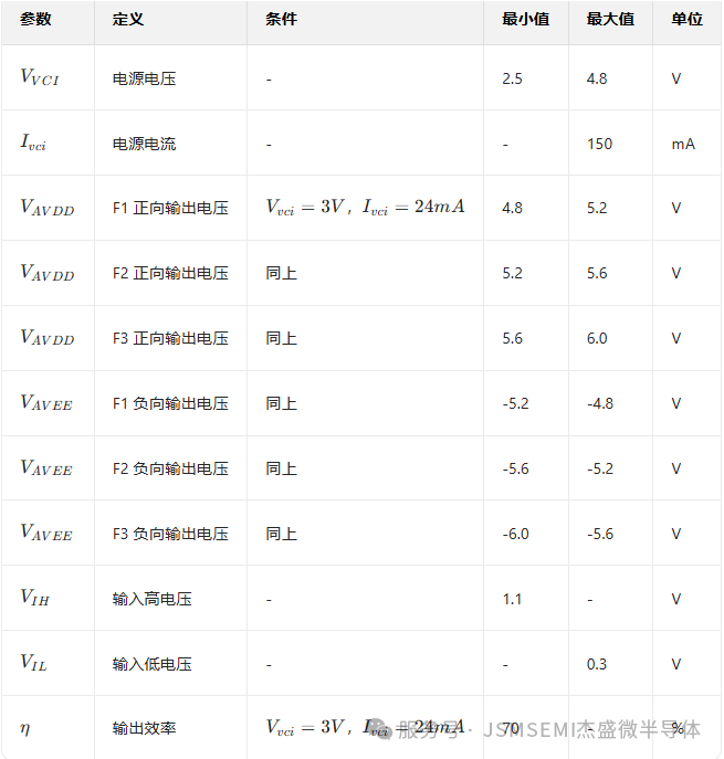 芯片的控制信号逻辑设计也十分严谨,尤其针对关键的电源使能引脚 EN_PWR,杰盛微特别标注:EN_PWR 用于使能 AVDD 和 AVEE 电荷泵电路,低电压时输出失效,且绝对不能直接连接到 VCI—— 这种明确的设计指引,能帮助工程师避免因接线错误导致的芯片损坏,减少调试返工成本。