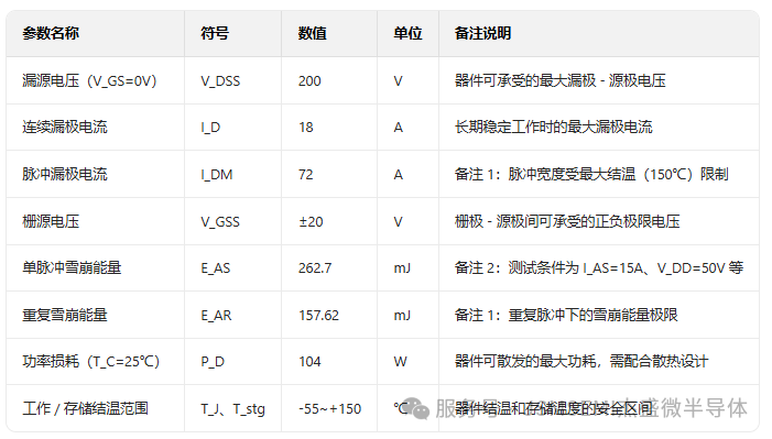 该参数定义了器件长期安全工作的极限条件,超出可能导致永久损坏,具体如下表: