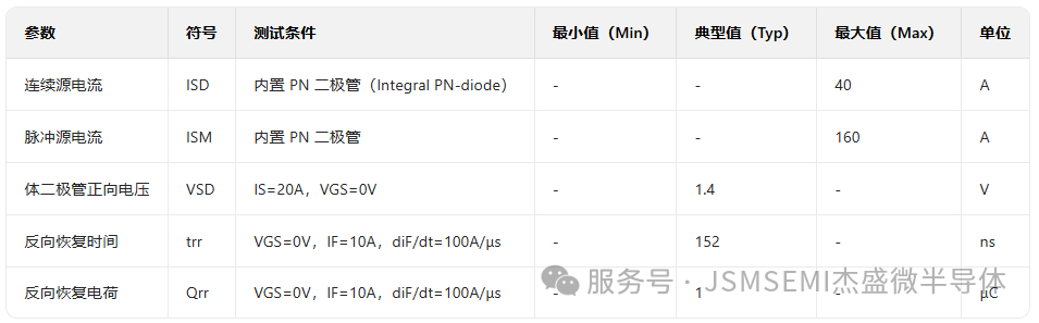 JSM40N20C/F 的快恢复体二极管具备三大优势:
