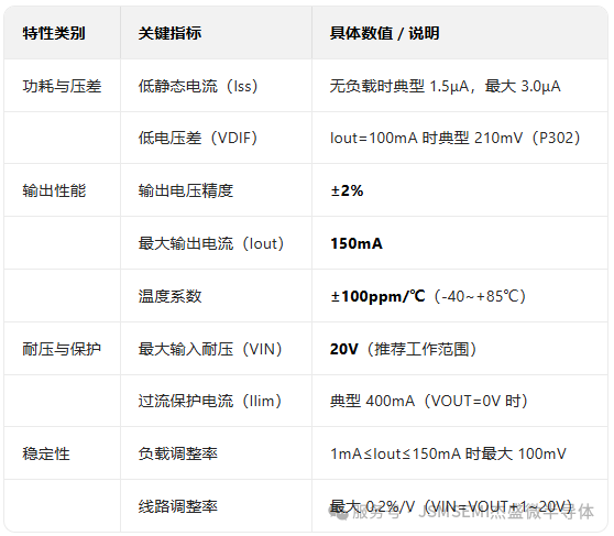 作为一款专为高要求场景设计的 LDO,XC6202 系列从根源上解决了传统稳压器 “功耗高、压差大、稳定性差” 的痛点,其核心参数每一项都精准击中工程师的需求: