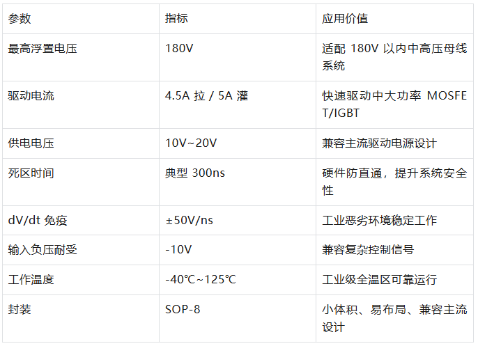 一、产品定位:180V 高压半桥驱动,国产化可靠替代