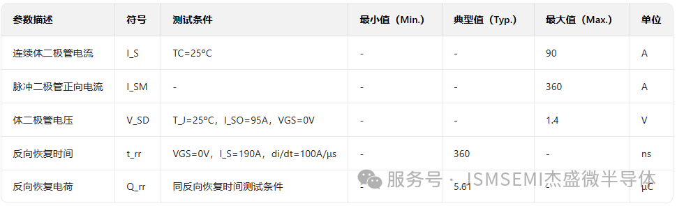 MOSFET 内置体二极管,用于续流等场景,特性如下: