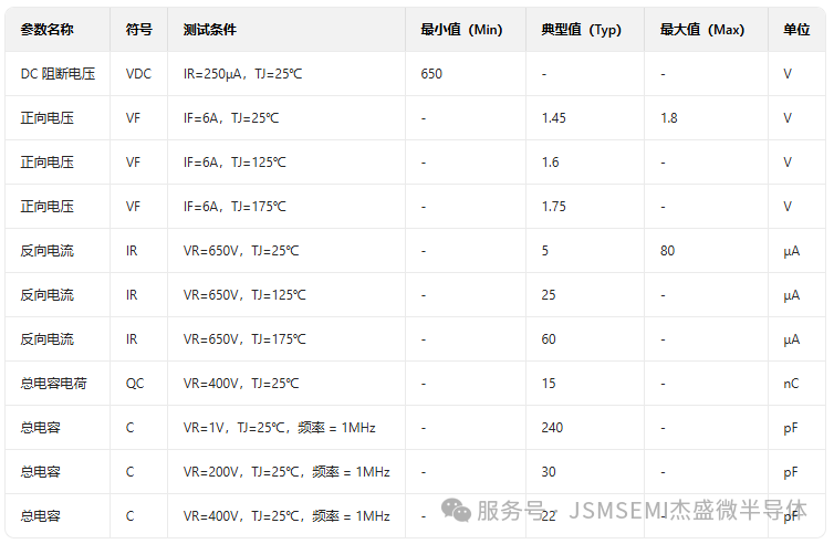 一款优秀的半导体器件,不仅需要领先的特性,更需扎实的参数作为性能支撑。杰盛微 SC3D06065N-JSM 在关键参数上的表现,充分展现了其在中高压电源领域的适配能力。